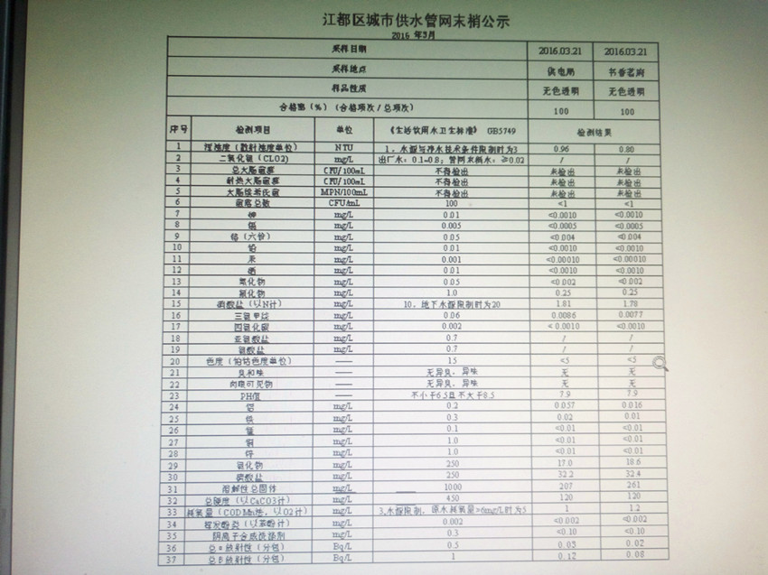 水質(zhì)公示