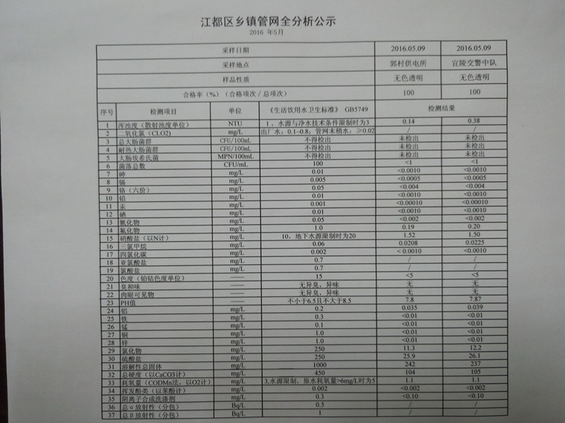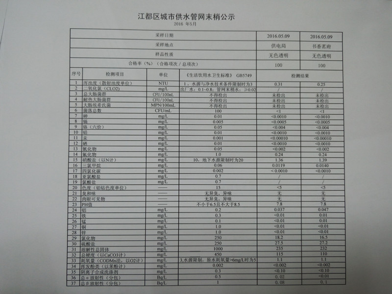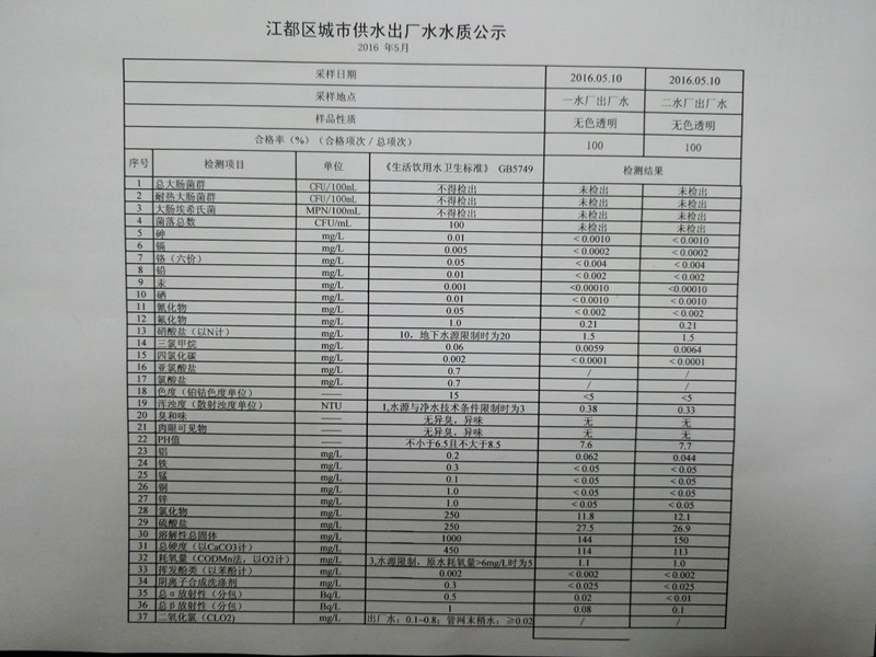 水質(zhì)公示