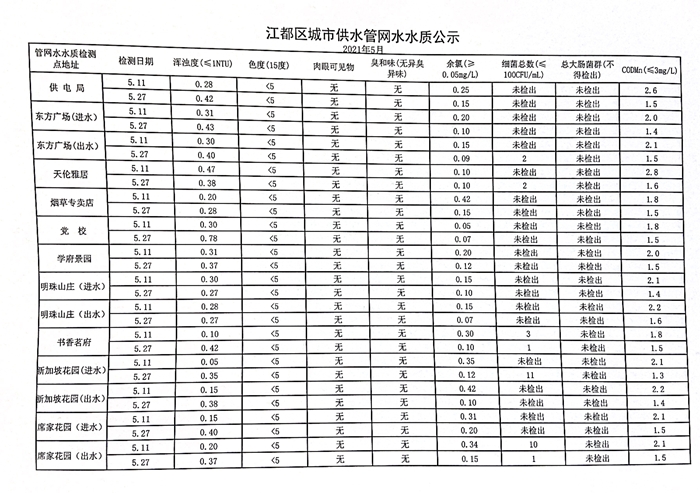 水質(zhì)公示