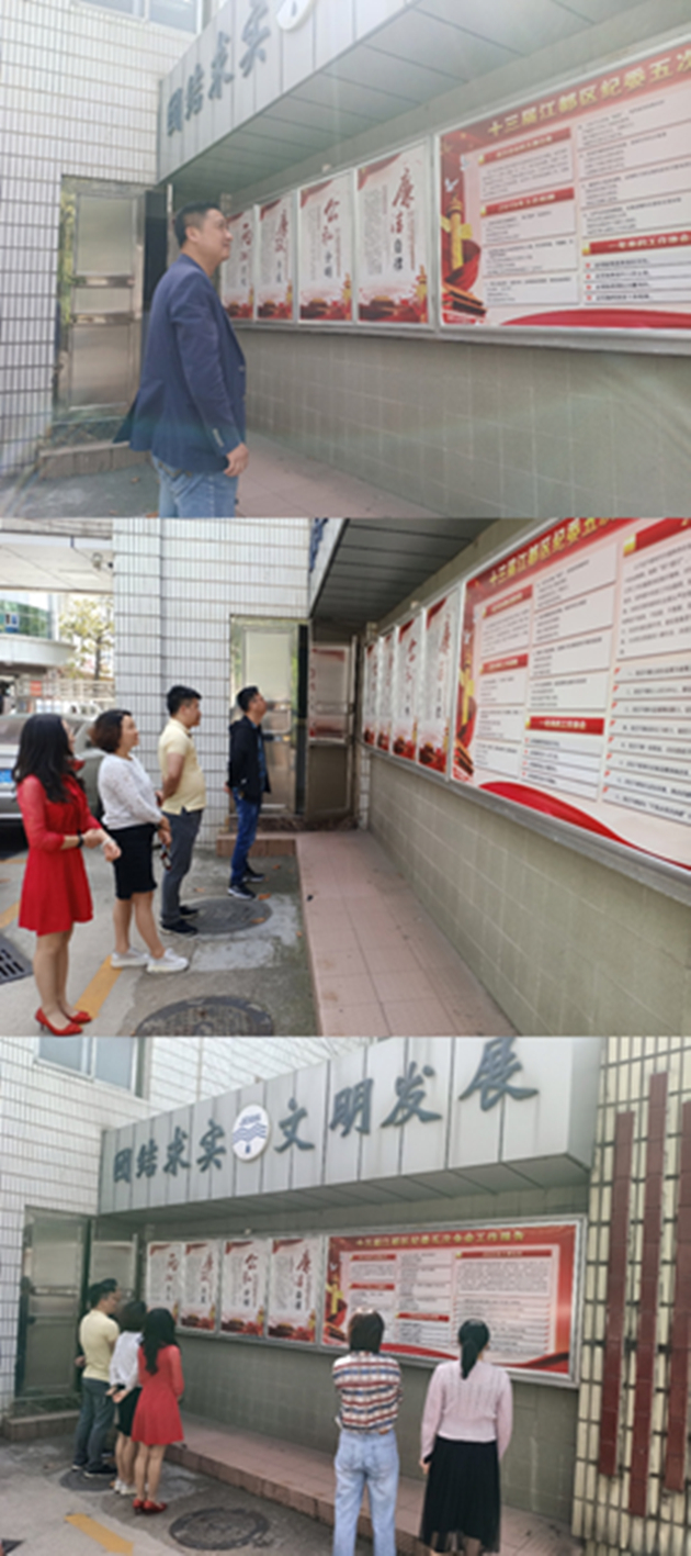 圖為公司黨員干部職工踴躍觀看黨風廉政宣傳專欄
