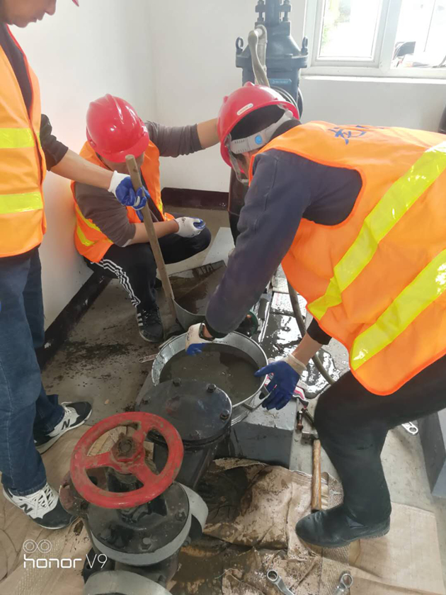 圖為邵伯污水廠螺桿泵搶修現場。